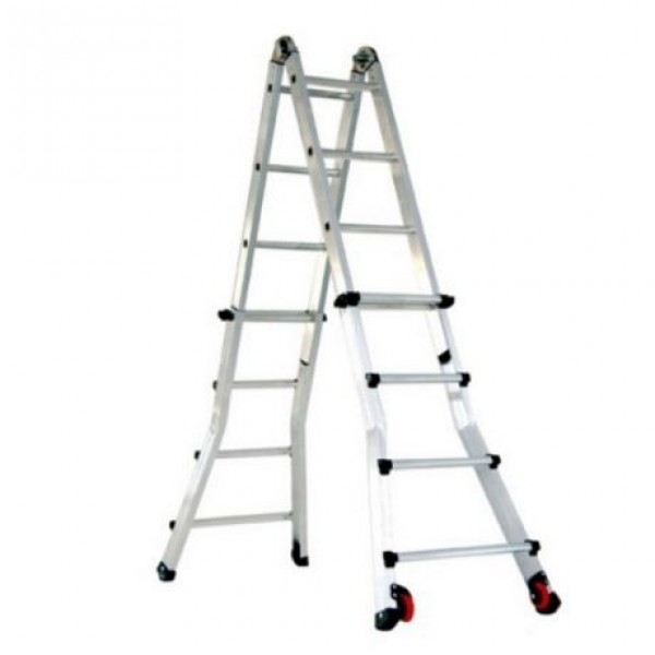 телескопическая лестница 3-в-1 изготовлена из усиленного алюминиевого профиля;
